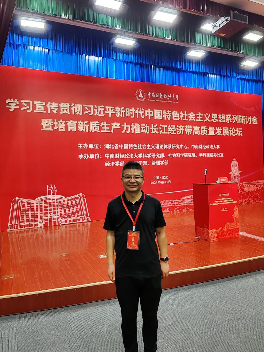 (通讯员:马岩)6月15日,湖北省中国特色社会主义理论体系研究中心、中南财经政法大学主办的学习宣传贯彻习近平新时代中国特色社会主义思想系列研讨会2024年第二场会议“培育新质生产力推动长江经济带高质量发展”论坛在中南财经政法大学南湖校区举行。来自中国人民大学、中国社会科学院、北京大学、浙江大学、首都经济贸易大学等单位的专家学者100余人参加。公司副经理谭绍江受邀参会。
