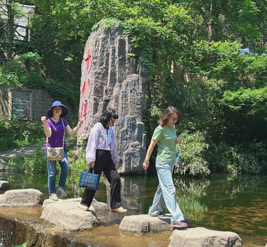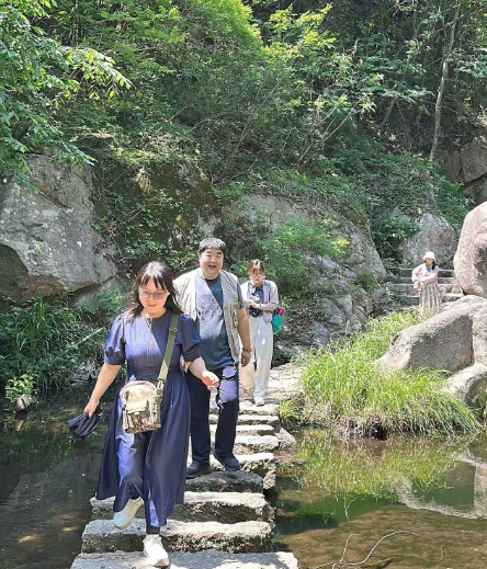 老师们在原始生态里徒步,栈道蜿蜒于峡谷两侧,一边观摩石船、石人等天然奇石,一边感受“山重水复疑无路,柳暗花明又一村”的野趣。层峦叠嶂间飞瀑流泉,徒步栈道旁民宿点缀,这些都生动诠释着生态优先、绿色发展的时代命题,大家在这里亲身感受到“绿水青山就是金山银山”。