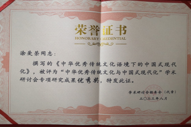 为深入学习习近平新时代中国特色社会主义思想,全面落实党的二十大精神,2023年6月13日,承德市社会科学界联合会、承德孔子文化传播促进会联合发布了《关于举办“中华优秀传统文化与中国式现代化”学术研讨会征文的通知》。组委会组织专家经过初评和终评,从征集到的355篇征文中评选出52篇优秀论文。公司涂爱荣教授提交的《中华优秀传统文化语境下的中国式现代化》一文被评为优秀论文。