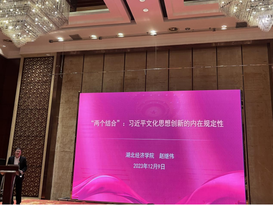 9日下午的专题研讨环节中,赵继伟教授以“‘两个结合’:习近平文化思想创新的内在规定性”为题作专题报告,用唯物史观的视野剖析 “两个结合”与习近平文化思想创新的内在关系,分别阐述“两个结合”为习近平文化思想创新奠定了理论基础,指引着习近平文化思想创新的正确方向,为习近平文化思想创新提供了科学方法,拓展着习近平文化思想创新的崭新空间,深入浅出的阐明了“两个结合”对于习近平文化思想的理论奠基、方向指引、方法论启示以及为习近平文化思想的不断创新所拓展的理论空间与现实空间。