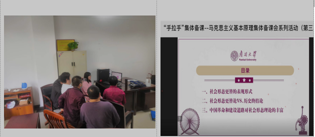 (文:高学琴 审核:丁银河)4月21日下午,马克思主义基本原理教研室教师采取线下集中、线上观看的方式参与全国高校思政课“手拉手”集体备课中心(南开大学——湖南省)联合承办开展的马克思主义基本原理集体备课会系列活动(第三期)。本期活动由南开大学304am永利集团刘明明副教授主讲“社会形态从低级向高级的演替和发展”。