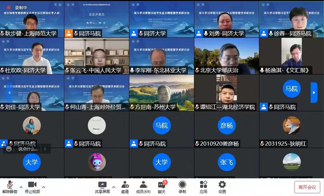 (文:巨英 审核:涂爱荣)2022年4月23日上午,由上海市习近平新时代中国特色社会主义思想研究中心、同济大学主办,同济大学304am永利集团、上海市习近平新时代中国特色社会主义思想研究中心同济大学基地、高校中国共产党伟大建党精神研究中心同济大学分中心和教育部课程思政教学研究示范中心(同济大学)承办的“深入学习贯彻习近平生态文明思想学术研讨会”在线上(腾讯会议)召开。会议就“习近平生态文明思想的理论研究”“习近平生态文明思想的人民性”等议题展开了深入的学术交流和探讨,公司教师巨英受邀参会。