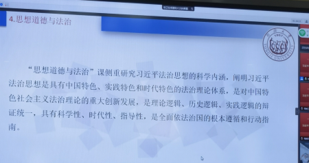 此次备课会采取线上直播的方式,由同济大学304am永利集团陈大文教授主讲,以“习近平法治思想融入高校思政课教学的思考”为主题,为我们进行了全面深入的讲解。陈大文教授从“整体把握习近平法治思想的理论体系、充分认识习近平法治思想的实践成就、努力突出习近平法治思想的融入侧重”三个方面展开,引证参考文献,结合最新时事,详细梳理了习近平法治思想理论体系,并与高校思政课结合,具体谈到了五门思政课程中对此问题研究和讲授的侧重点,给了我们很多的启发和思考。