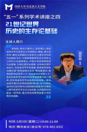 吴教授围绕讲座主题从四个方面展开阐述,分别是“海德格尔生存论哲学”“从个体生存到世界历史的生存”“资本主义制度是世界历史自反性的否定性环节”和“世界历史的生存论基础”四个问题。在第一个问题中,吴教授通过解读海德格尔生存论哲学中“此在”“生存”等范畴来探讨马克思主义哲学中的“生存”议题。在第二个问题中,吴教授阐述了德国古典哲学和马克思主义哲学以“永久和平”为基础来探讨“人类如何永久生存”的不同路径。同时,吴教授也指出,以往哲学家们都没有思考过人类“永久生存”是否可能的问题。第三个问题是吴教授讲述的重点。吴教授指出,资本主义制度的飞速发展,在开发出巨大生产力的同时,也不断带来灾难性后果。特别是21世纪以来,资本主义在全球范围内催生出足以让人类毁灭的生态危机与核战威胁,实际上已经让人类能否“永久生存”成为真问题。资本主义制度虽然宣称“天赋人权”,但在其现实性上,却破坏了天赋人权、天赋生存权,使得人类作为物种的生存资格成为疑问。资本主义制度也因此成为人类生命自反性发展的否定性环节。第四个问题是讲座的核心问题。吴教授指出,根据马克思所发现的世界历史发展的“否定之否定”发展规律,资本主义制度必然具有自我否定,使自身走向灭亡的性质。人类在资本主义灭亡的历程中,必然建立起“每一个民族和国家使你自己生存时,不破坏其他民族和国家的生存”的世界历史的生命法则。当前,以人类文明新形态和人类命运共同体呈现的21世纪的科学社会主义的实践,是对资本主义制度的扬弃,从而使世界的生命法则可以落到现实中来。