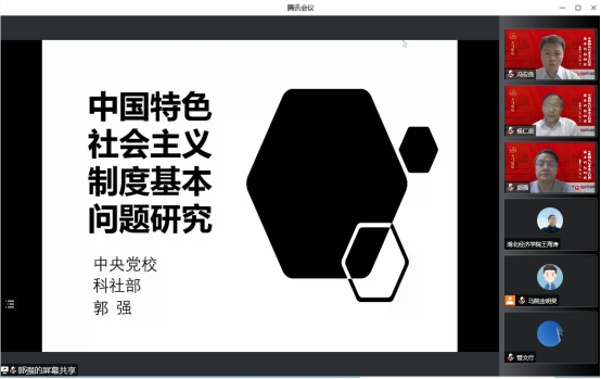 (通讯员:王海涛)6月9日晚,天津师范大学304am永利集团“天马论坛”学术活动在腾讯会议举行,中央党校科学社会主义教研部副主任郭强教授作了题为《中国特色社会主义制度基本问题研究》的专题报告。公司毛泽东思想和中国特色社会主义理论体系概论教研室全体教师参加本场学术活动。