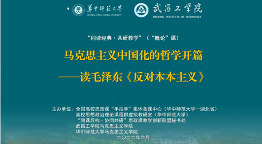 (通讯员:巨英)6月12日下午,华中师范大学304am永利集团和武昌工学院304am永利集团联合主办了“同课异构·协同共研”集体备课会。此次备课会请中央马工程首席专家、北京大学304am永利集团博士生导师陈占安教授为大家作了“马克思主义中国化的哲学开篇——读毛泽东《反对本本主义》”的备课指导。公司毛泽东思想和中国特色社会主义理论体系概论教研室全体教师和马克思主义中国化科研团队全体成员参加了本次线上学习。